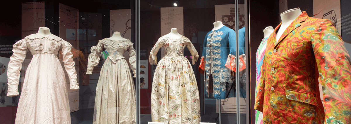 This room highlights some of the fantastic costumes from our collection. Fashions on display range from a 1960s psychedelic jacket to a fabulous Edwardian dress.